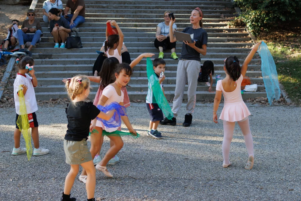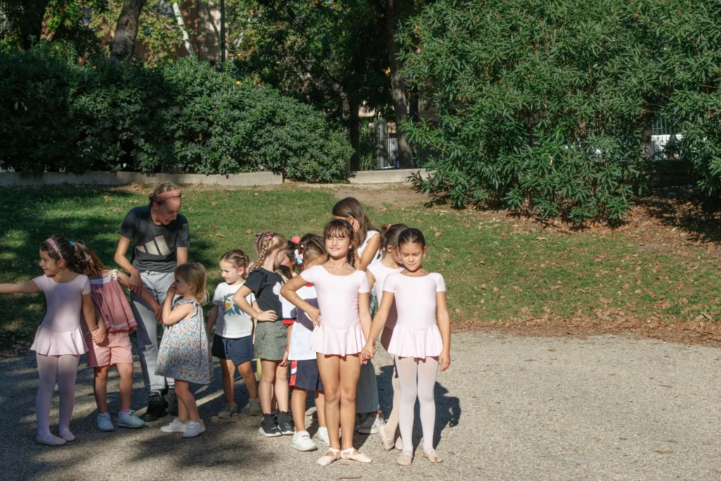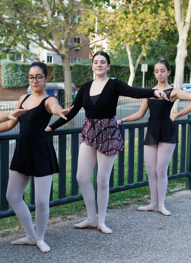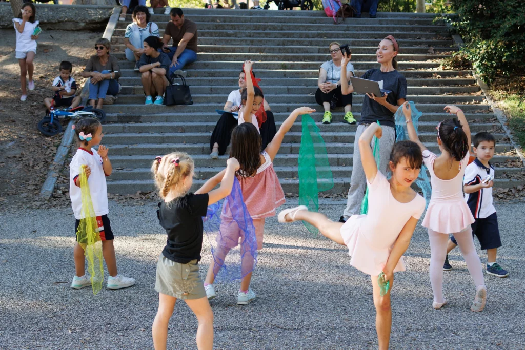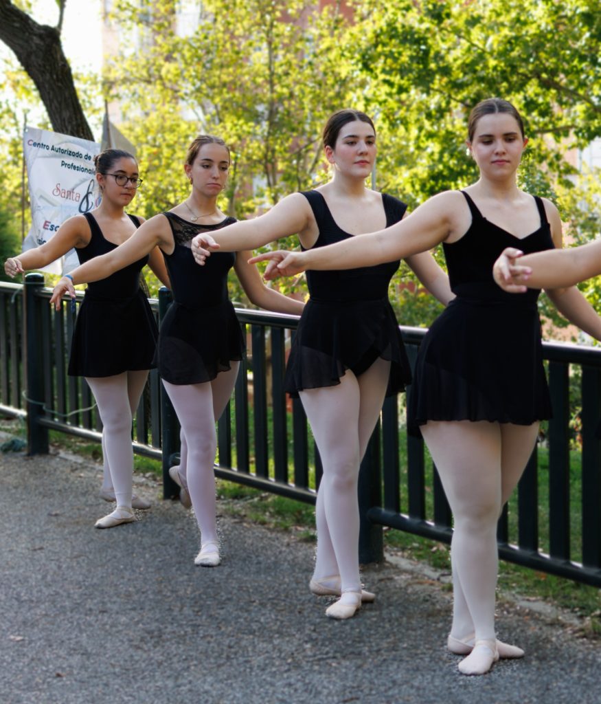 Los pasados martes 26 y miércoles 27 de septiembre, coincidiendo con el comienzo del nuevo curso 2023/24, salimos al vecino parque de Almansa con las alumnas de Ballet, para disfrutar del aire libre y, al mismo tiempo, acercar un poco más las clases de Ballet a la gente menuda y no tan menuda del barrio.