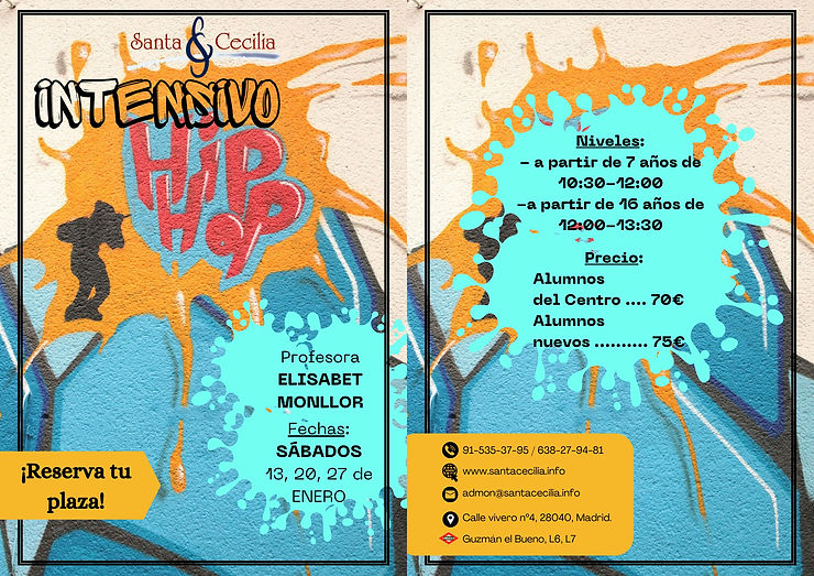 Nuestra Aula de Danza, como sabéis quienes nos seguís de cerca, es un hervidero de actividad. Por ello, no es de extrañar que sus profesoras hayan decidido que el año 2024 en Santa Cecilia lo empezaremos con muchísimo ritmo; en este caso será a través de los bailes urbanos (street dance) y, más concretamente, de la mano del Hip-Hop. Así, durante las mañanas de los sábados 13, 20 y 27 de enero, vamos a llevar a cabo un INTENSIVO DE INICIACIÓN AL HIP-HOP de la mano de Elisabet Monllor, profesora especialista en esta disciplina.